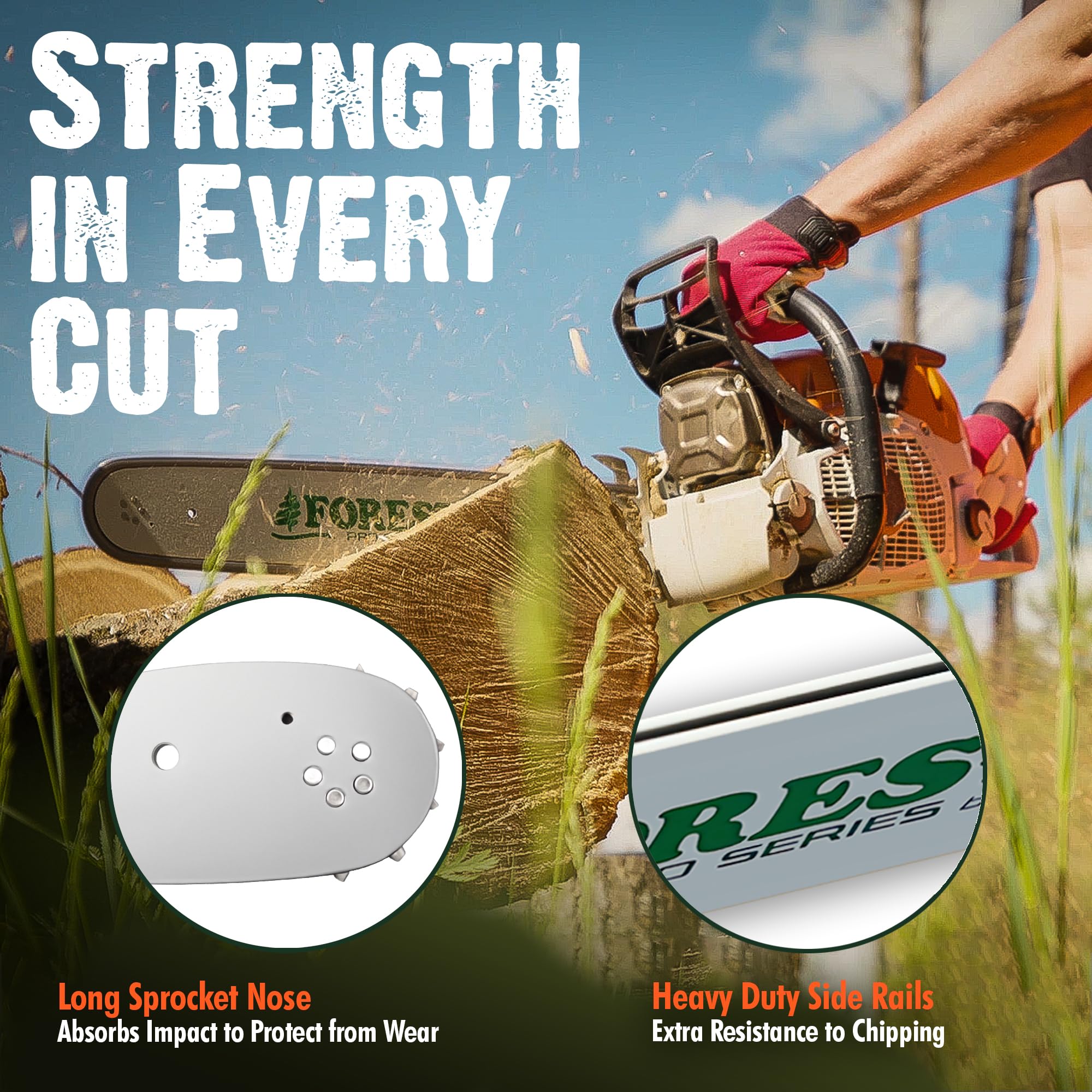 - BUILT TO LAST: Manufactured using steel imported from the U.S.A. so it will hold up to wear and tear. This chainsaw bar is also reversible and built to last.