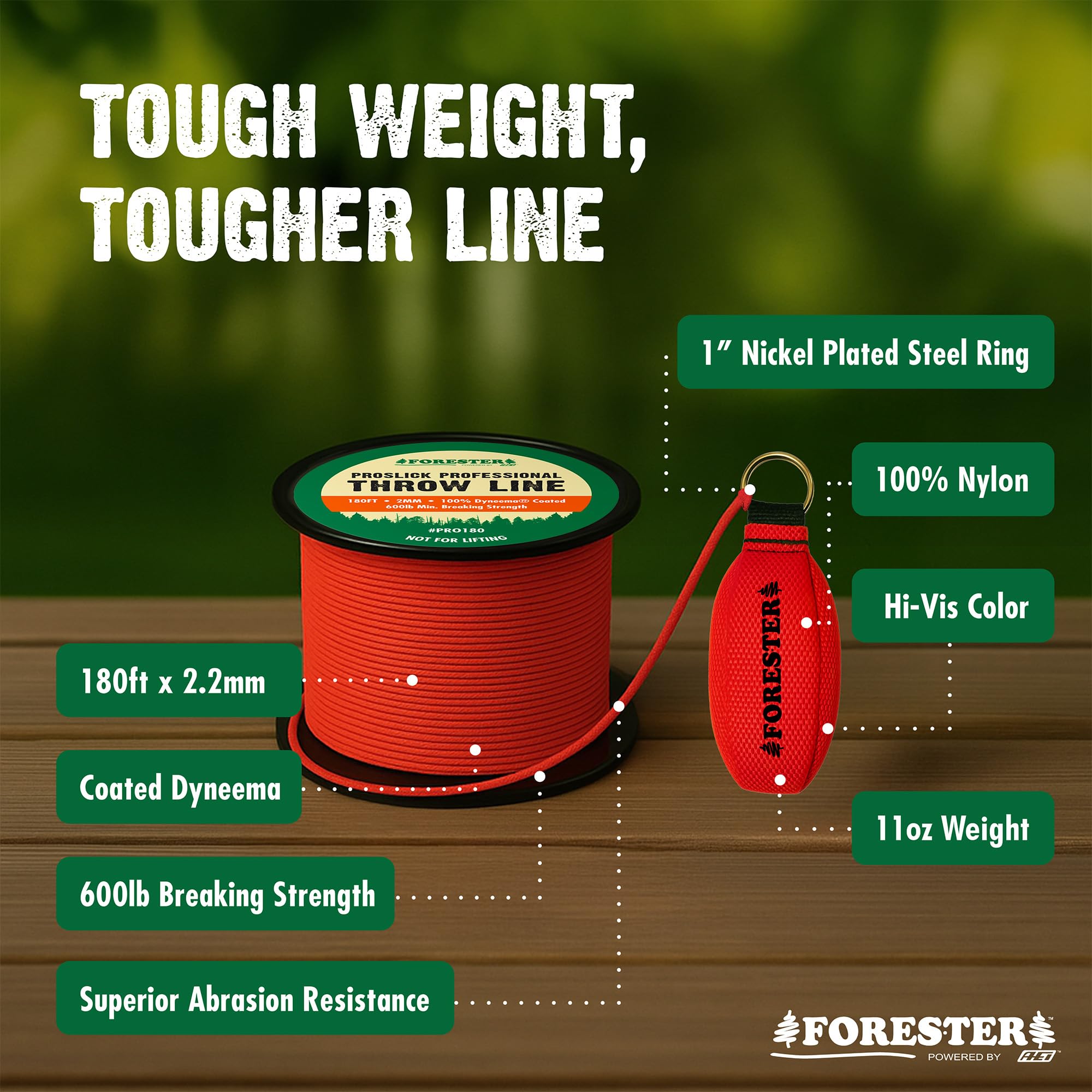FORESTER Arborist Throw Line Kit | 15oz Throw Weight & 180ft Throw Rope | Pro Slick 100% Dyneema Throw Line Rope | Arborist Equipment for Tree Climbing—