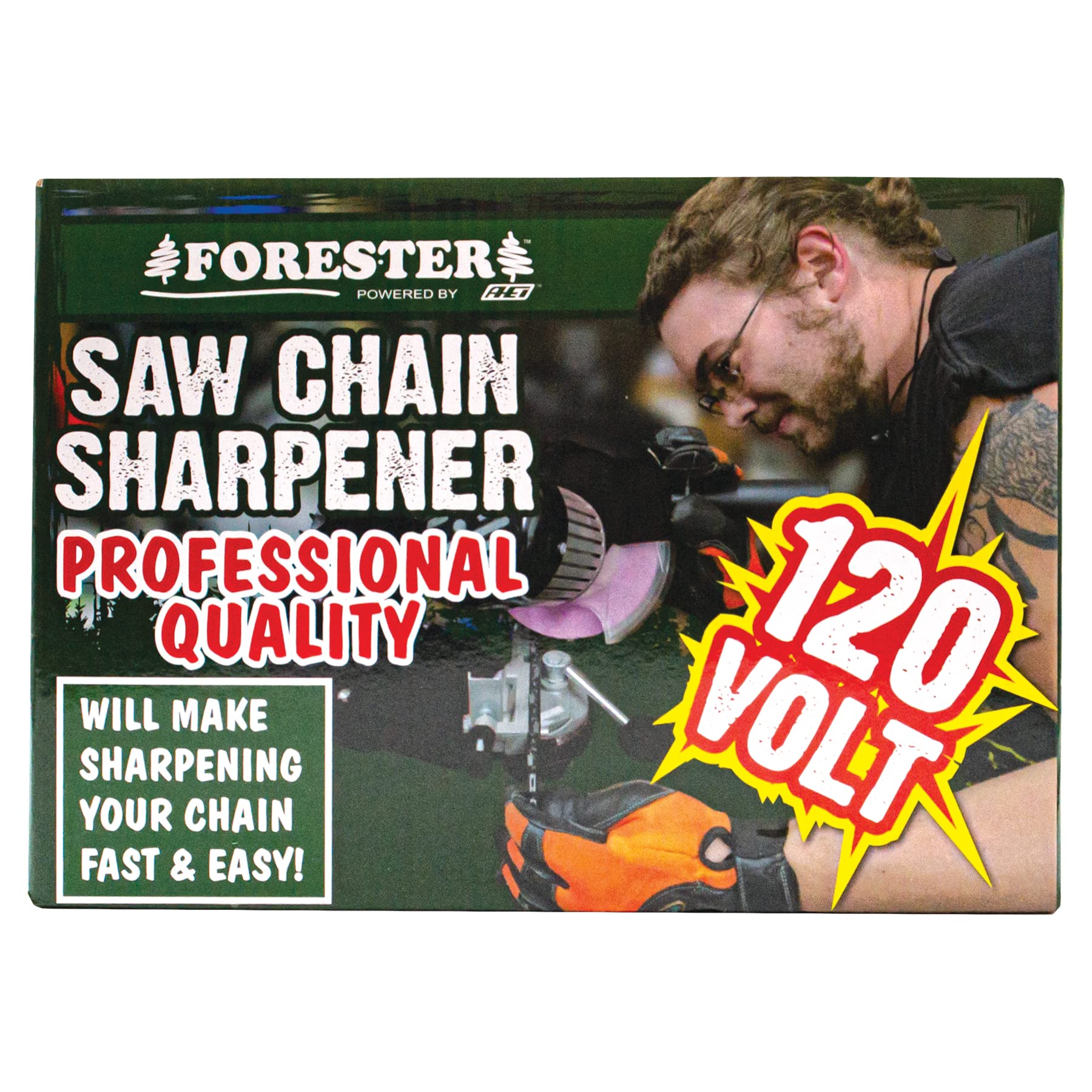 - Adjustable Power Head - The Forester Chain Saw Sharpener features a pivoting head that can be adjusted to whatever angle or degree you need. This power chainsaw sharpener is made from heavy duty material that is durable and long lasting. Perfect Product for Professionals, Semi Professionals, and Home Owners who use chainsaws.