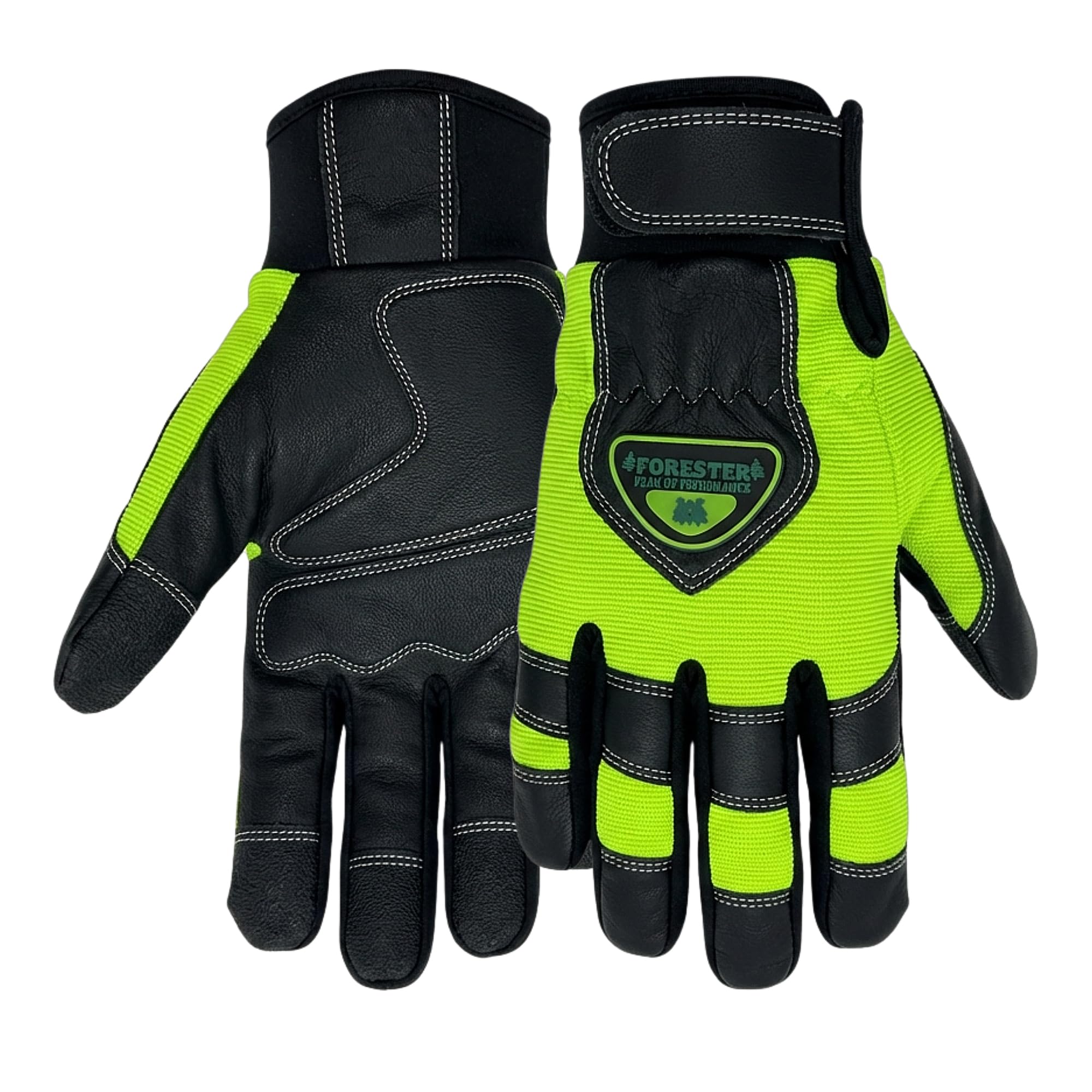 FORESTER Hi-Vis Chainsaw Gloves | Anti-Vibration Leather Safety Gloves for Chainsaw Work, Logging & Tree Cutting | Cut-Resistant Protection—