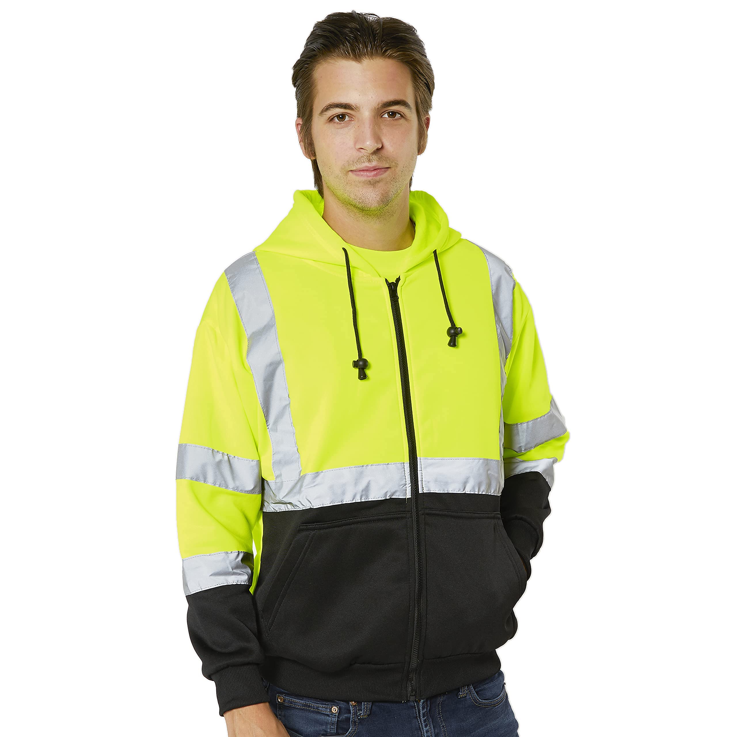 FORESTER High Visibility Reflective Class 3 Zippered Hooded Sweatshirt. High Visibility Hoodie For Men with Black Bottom
